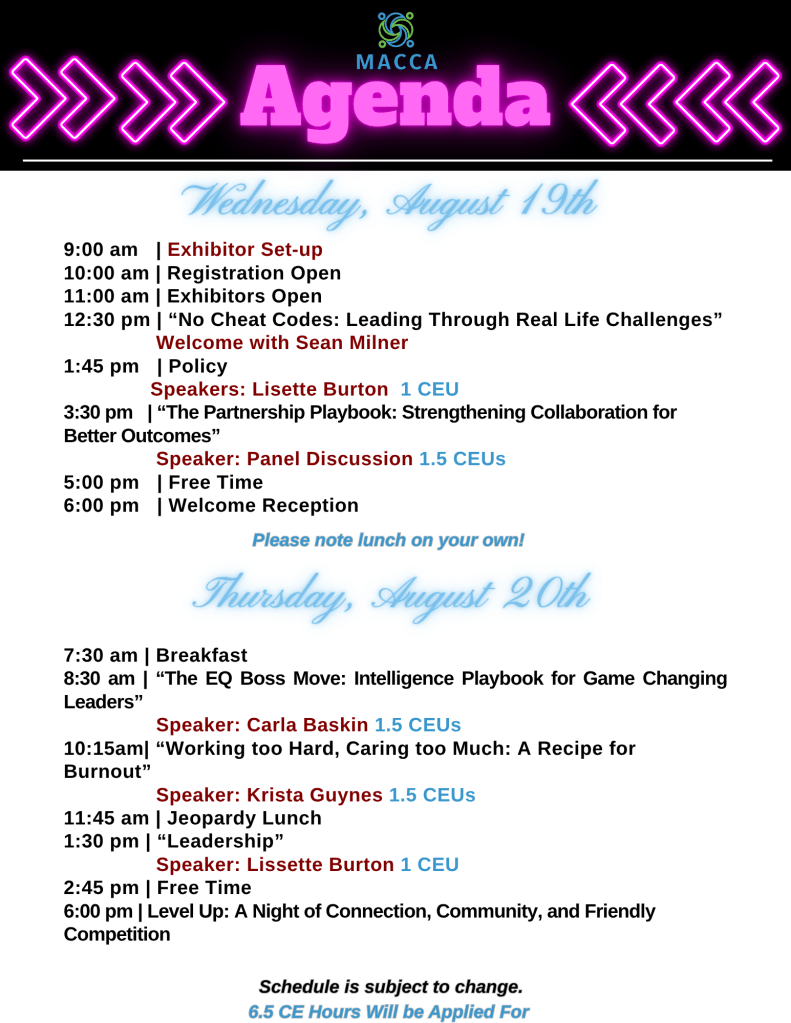 The MACCA Leadership Conference is a dynamic, statewide gathering designed to bring together professionals, advocates, and leaders committed to strengthening Mississippi’s support systems for children and families. The conference focuses on developing leadership skills, sharing best practices, and fostering collaboration across agencies and communities.